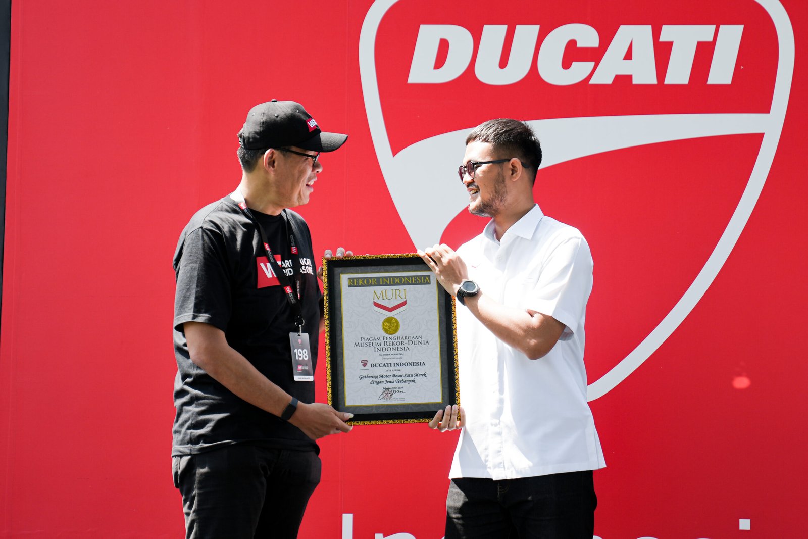 Keberhasilan Ducati Indonesia inipun menorehkan catatan rekor MURI (Museum Rekor-Dunia Indonesia), dengan tajuk penghargaan “Pengumpulan Motor Besar Satu Merek dengan Jenis Terbanyak”. Pencapaian ini diraih bukan hanya karena kesuksesan mengumpulkan sebanyak 305 Ducati, tetapi juga berkat keberhasilan mengumpulkan seluruh varian untuk mengikuti riding, mulai dari jenis Superbike, Streetfighter, Diavel, Monster, DesertX, Multistrada, Hypermotard, dan Scrambler. Piagam penghargaan diserahkan langsung oleh perwakilan MURI kepada Jimmy Budhijanto di tengah rangkaian acara utama.