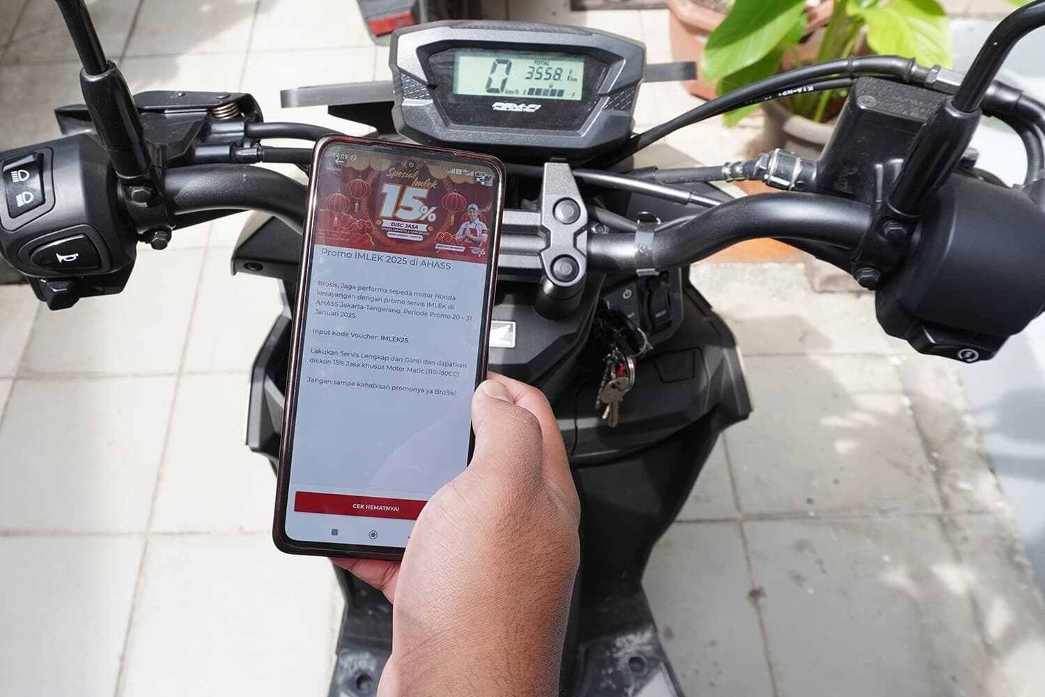 Servis lengkap di AHASS mencakup pengecekan sistem rem, pelumas, kelistrikan, hingga sistem pendinginan. Semua pengecekan dilakukan oleh mekanik bersertifikasi dan didukung suku cadang asli Honda untuk menjamin kualitas servis. Untuk mendapatkan diskon servis 15%, konsumen cukup mengunduh aplikasi WANDA. Lalu isi data diri dan data sepeda motor, pilih lokasi AHASS terdekat, pilih paket servis dan pilih jadwal servis termasuk hari serta jam kedatangan.