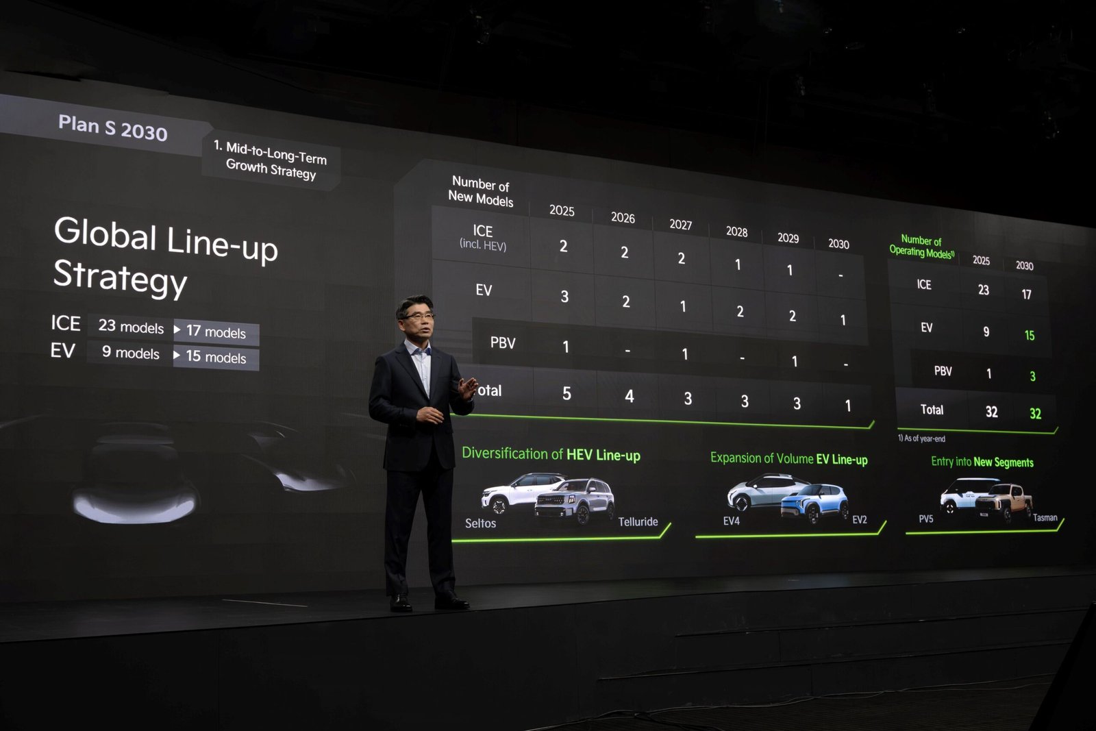 Pada tahun 2025, Kia akan meluncurkan lima model baru, satu model penyempurnaan produk, dan tiga model turunan. Pikap Tasman akan menciptakan permintaan baru dan mendorong pertumbuhan pendapatan, sementara EV4 akan terus memimpin adopsi EV dalam jumlah besar. Selain itu, peluncuran PV5 akan menandai dimulainya bisnis PBV khusus Kia.