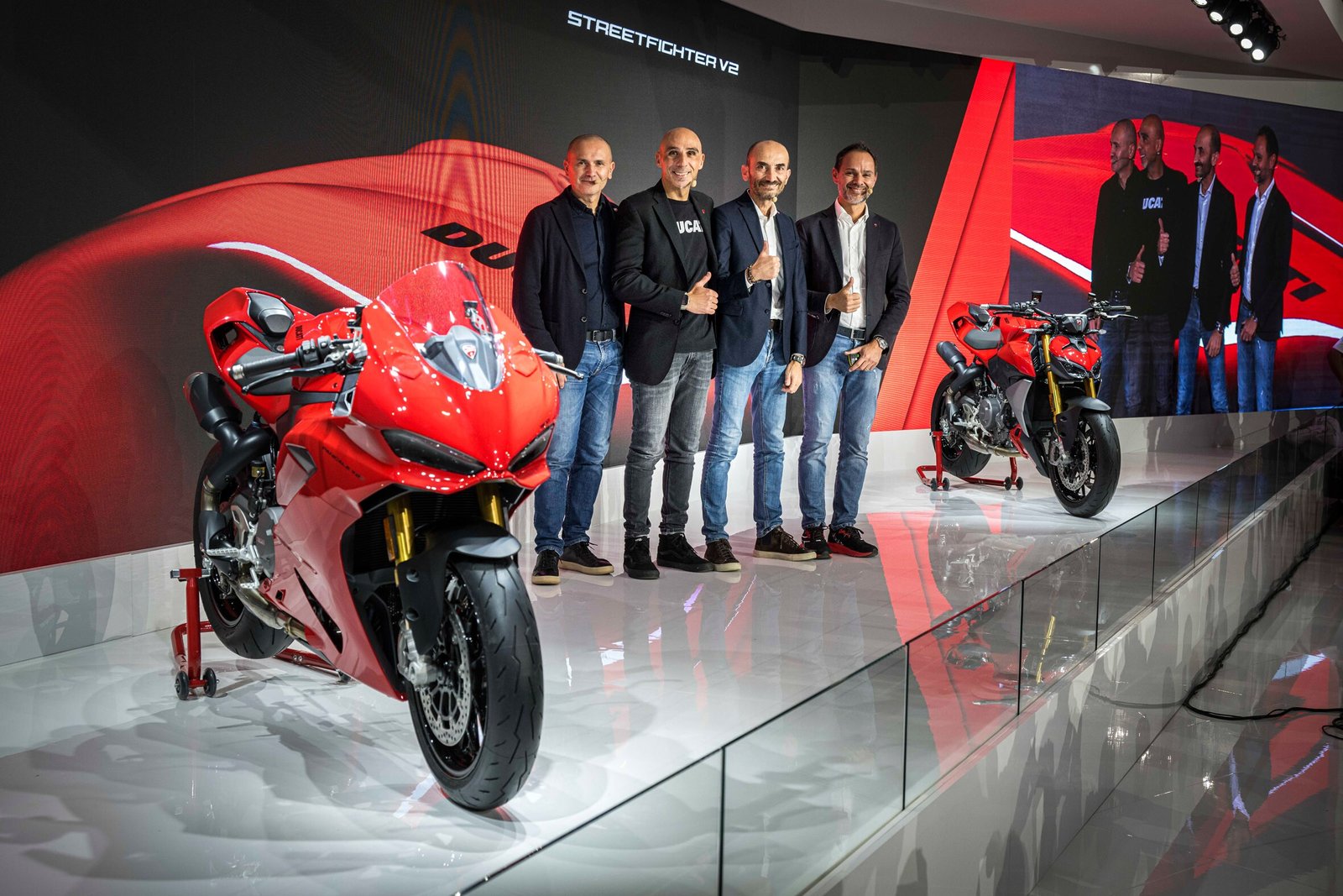 Bintang utama di stand adalah dua model baru yang dilengkapi mesin Ducati V2, diperkenalkan dalam episode keenam Ducati World Première 2025. Panigale V2 yang baru adalah Panigale paling ringan yang pernah ada, menandai babak bersejarah dalam lini motor sportbike Ducati, sedangkan konsep Streetfighter V2 2025 dituangkan ke dalam versi naked berkat ‘Fight Formula’.