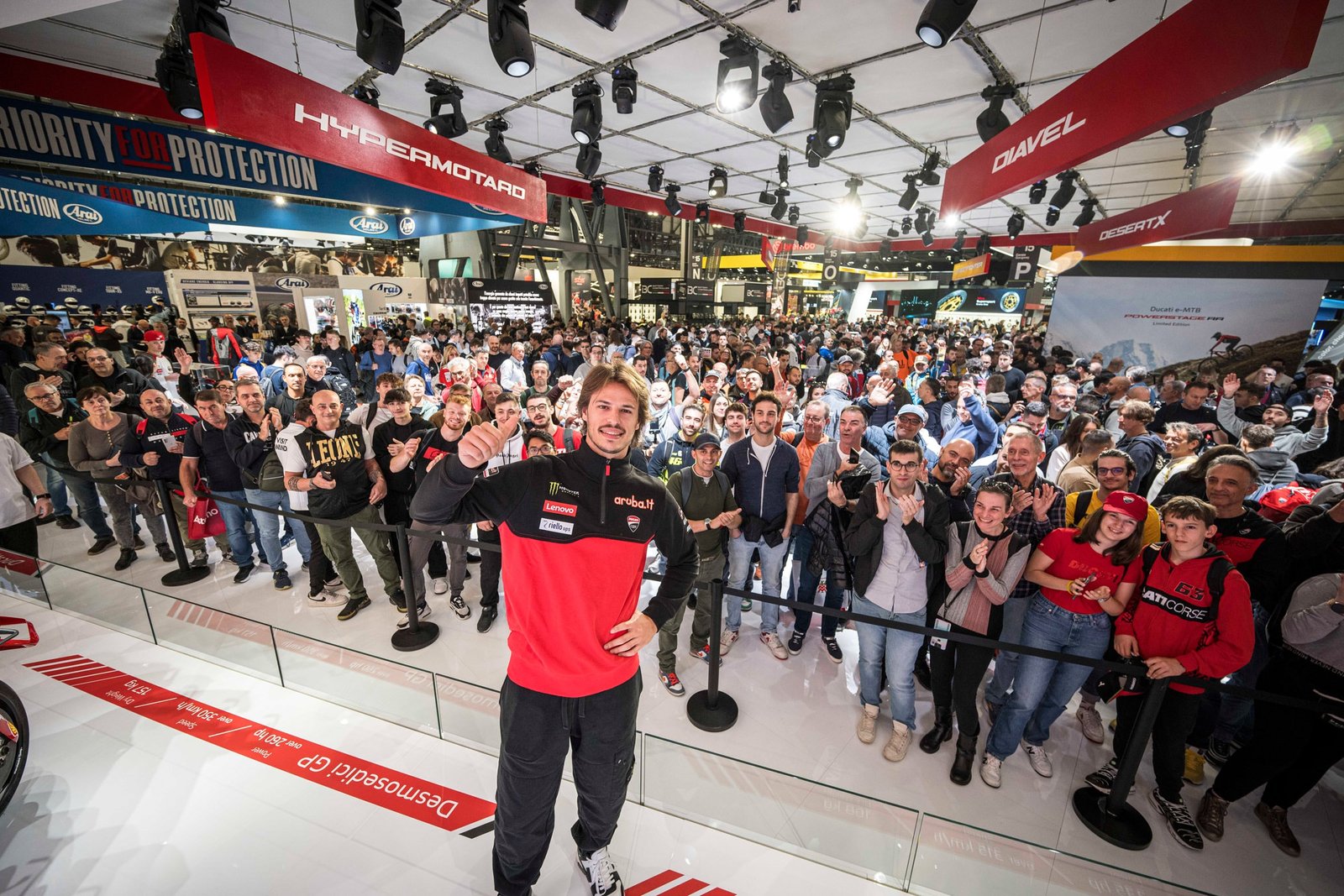 Para pengunjung EICMA juga dapat merasakan semangat Ducati berkat acara yang meramaikan pekan tersebut. Pembalap dan para kolega Ducati akan bertemu penggemar di stand. Pada Rabu, 6 November, Álvaro Bautista menjadi bintang pertama dalam sesi Meet & Greet. Pada hari-hari berikutnya, giliran Wakil Juara Dunia Superbike (WorldSBK) Nicolò Bulega (Kamis 7, 11:00 – 11:30 dan 16:30 – 17:00) dan para pembalap Desmo450 MX. Alessandro Lupino, Juara Italia sembilan kali, dan Tony Cairoli, Juara Dunia sembilan kali, akan bertemu dengan publik pada Kamis, 7 November, dari pukul 16:00 hingga 16:30, dan Jumat, 8 November, dari pukul 11:00 hingga 11:30.