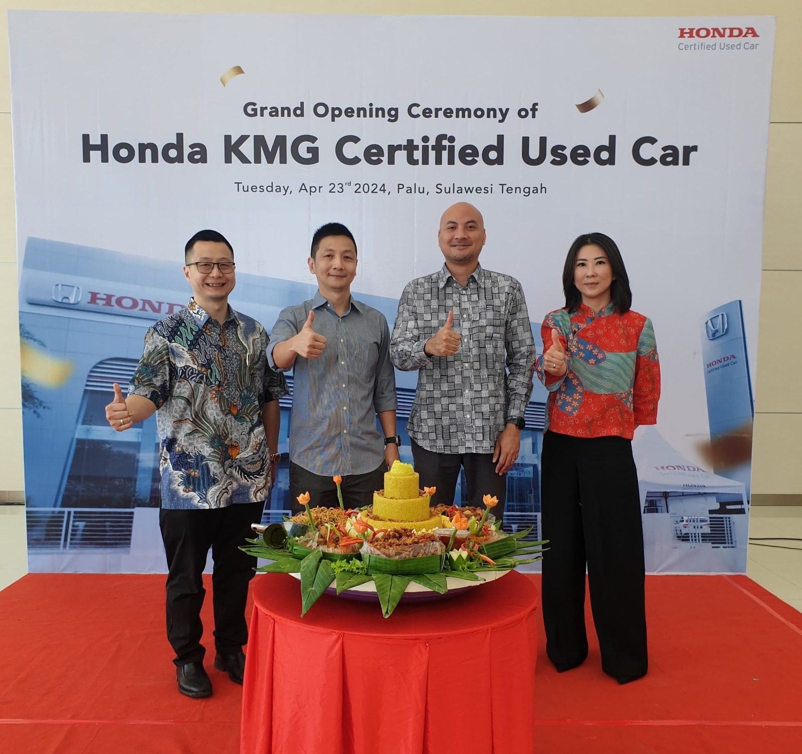 Yusak Billy selaku Sales & Marketing and After Sales Director PT Honda Prospect Motor mengatakan, “Peresmian Honda KMG Certified Used Car merupakan upaya kami dalam memenuhi naiknya permintaan konsumen terhadap layanan mobil bekas Honda berkualitas terutama di wilayah timur Indonesia. Kami berkomitmen untuk memberikan berbagai kemudahan bagi konsumen yang ingin membeli mobil baru Honda dengan cara tukar tambah sembari tetap memberikan layanan yang handal dan berkualitas bagi setiap pelanggan kami.”