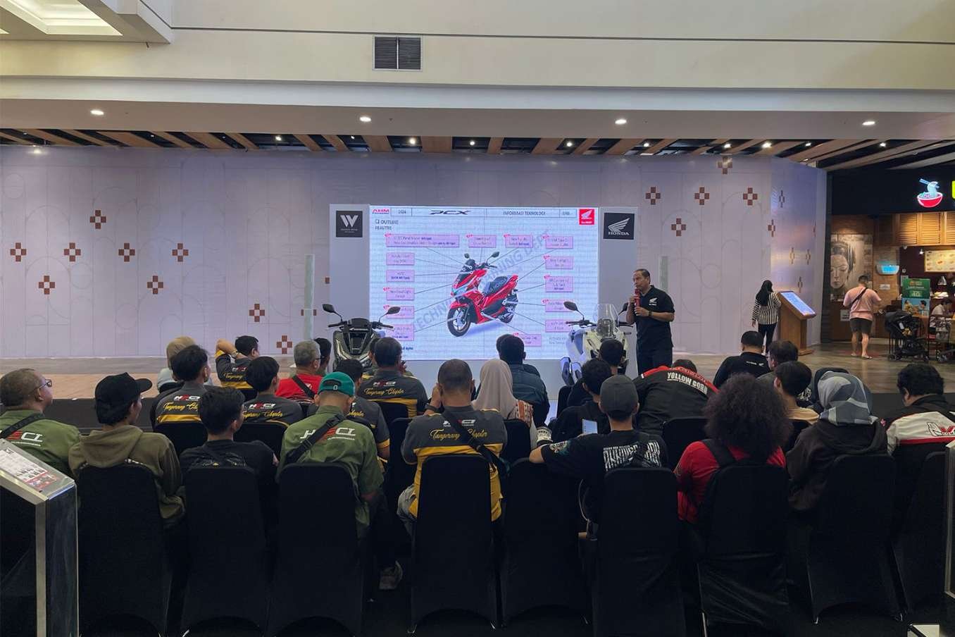 Komunitas diberikan kesempatan untuk mendengarkan sesi product knowledge dari tim teknis sepeda motor Honda PT WMS. Dalam sesi ini, para anggota komunitas mendapatkan penjelasan mengenai teknologi dan keunggulan skutik AT Premium 160cc, sehingga mereka bisa lebih memahami performa dan fitur dari motor yang mereka gunakan sehari-hari.