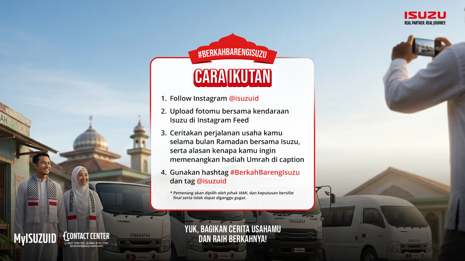 serta menggunakan hashtag #BerkahBarengIsuzu.