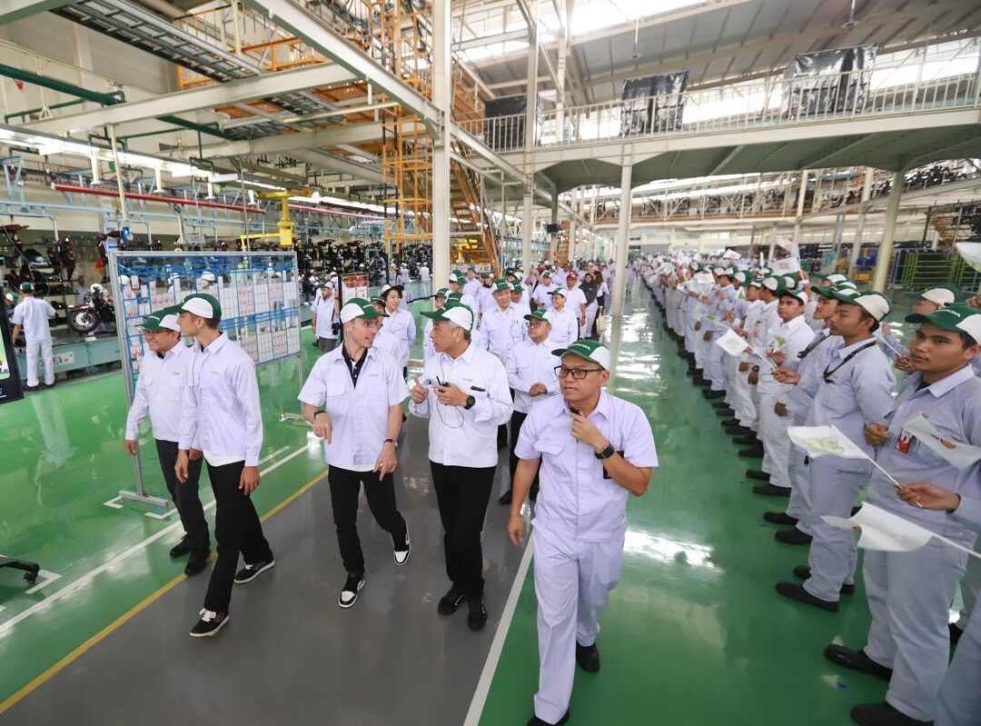 Duet pembalap MotoGP, Joan Mir dan Luca Marini, melihat proses produksi di AHM Plant