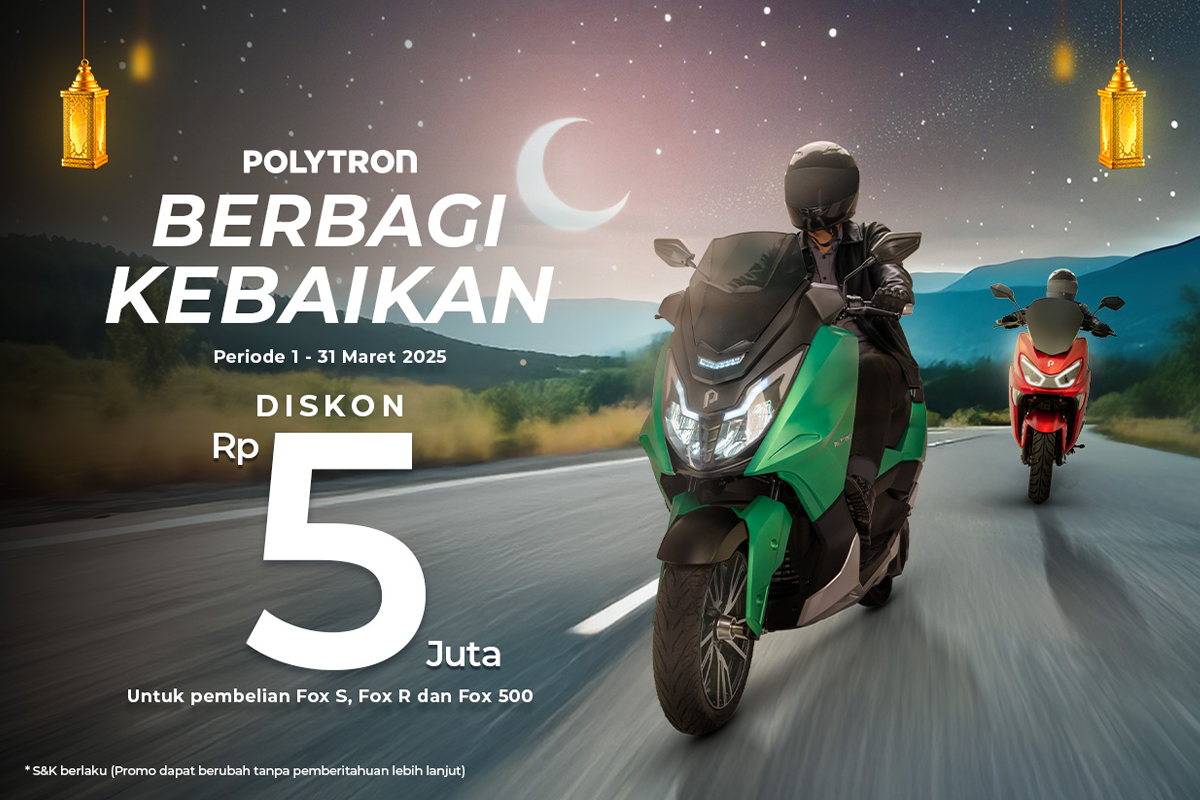 Lebih lanjut, sebagai bagian dari perayaan Ramadan, Polytron turut memperpanjang promo spesial berupa diskon Rp5 juta untuk pembelian kendaraan listrik Fox S, Fox R, dan Fox 500. Promo ini berlaku untuk pembelian secara cash maupun kredit selama periode 1 hingga 31 Maret 2025.
