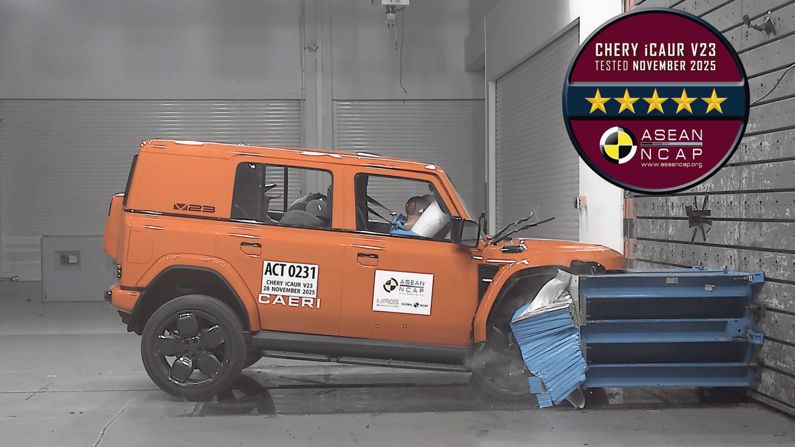 ASEAN NCAP adalah sistem penilaian keselamatan yang terpercaya dan diakui di Asia Tenggara. Evaluasinya mencakup empat area: Perlindungan Penumpang Dewasa (Adult Occupant Protection), Perlindungan Penumpang Anak (Child Occupant Protection), Bantuan Keselamatan (Safety Assist), dan Keselamatan Pengendara Sepeda Motor (Motorcyclist Safety). iCAR V23 menerima peringkat 5 bintang di keempat kategori tersebut, yang menunjukkan bahwa V23 memenuhi standar internasional dalam struktur bodi, desain keselamatan, dan fitur keselamatan aktif maupun pasif.