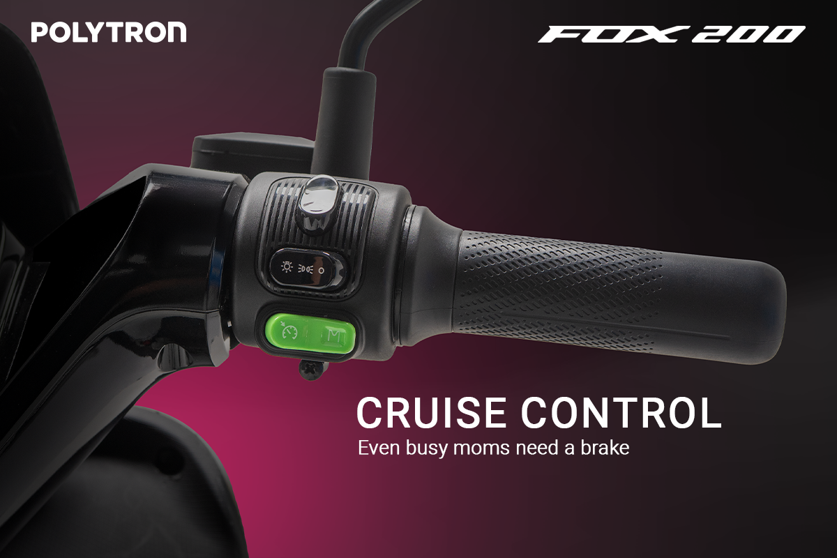 Ilman turut menjelaskan bahwa Fox 200 juga memahami bahwa “Even busy moms need a break”. Kehadiran tombol fitur cruise control memungkinkan pengendara menjaga kecepatan konstan tanpa harus terus menarik gas, memberi jeda sejenak di perjalanan panjang atau saat melewati jalur yang lengang membuat berkendara terasa lebih santai tanpa mengorbankan kendali. Fitur ini dapat diaktifkan dengan menekan tombolnya setelah mencapai kecepatan minimal 5km/h.