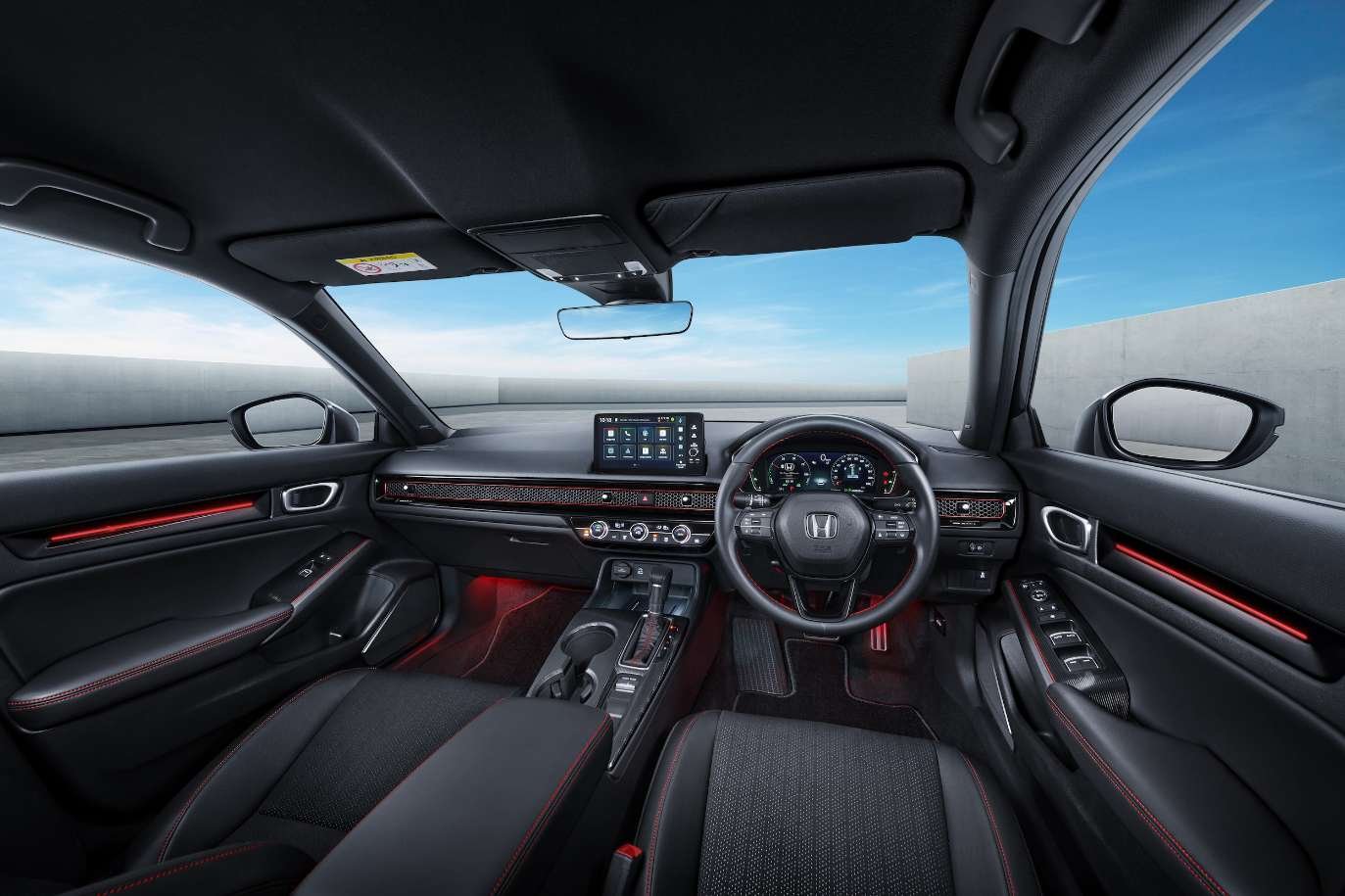 Interior New Honda Civic RS e:HEV dirancang untuk menghadirkan kenyamanan maksimal melalui ruang kabin yang luas, ergonomis, dan berorientasi pada kesenangan berkendara. Di bagian depan, tersedia kursi dengan balutan kombinasi kulit berwarna hitam dengan jahitan merah yang menegaskan karakter sporty khas Civic. Sistem pendingin udara dual zone memungkinkan pengemudi dan penumpang depan mengatur suhu secara terpisah sesuai preferensi.