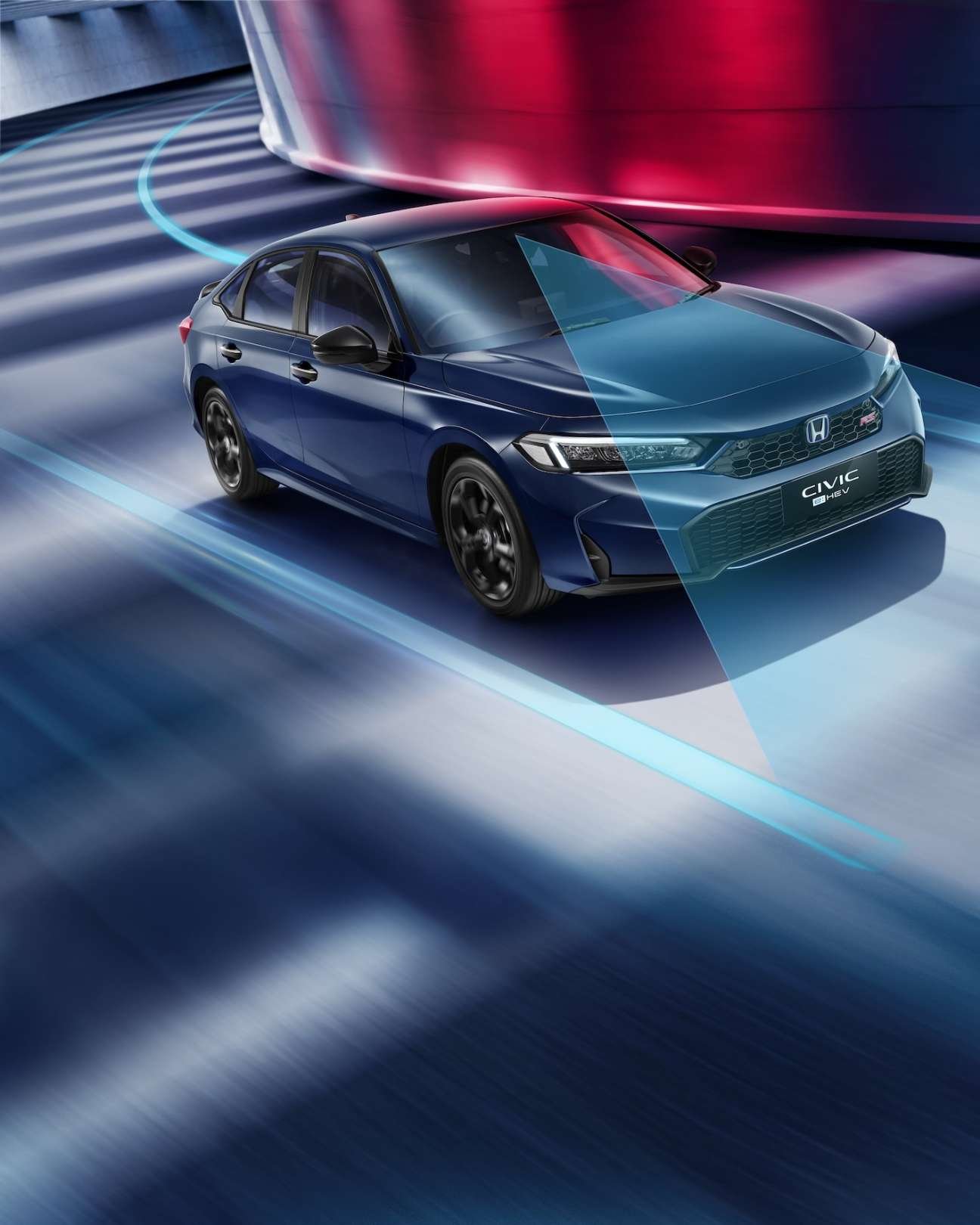 Untuk keselamatan aktif, Civic RS e:HEV mengusung paket lengkap teknologi Honda SENSING yang mencakup: