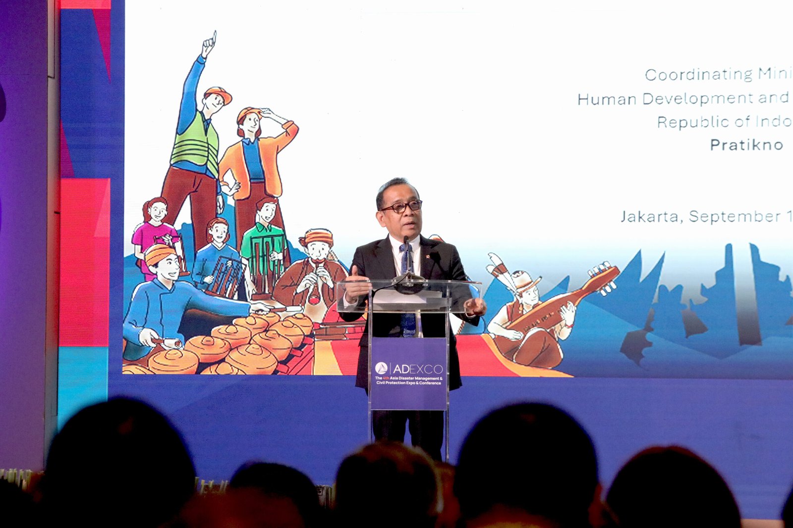 ADEXCO 2025 dibuka secara resmi oleh Menteri Koordinator Bidang Pembangunan Manusia dan Kebudayaan Prof. Dr. Pratikno pada hari ini, Rabu (10/9). Dalam sambutan, Pratikno mengajak komunitas internasional untuk bergabung dalam membangun dunia yang resiliensi berkelanjutan. Hal tersebut tidak hanya berfokus pada ancaman bahaya, tetapi juga dalam menyikapi bencana yang terjadi dan dapat kembali pulih pascabencana.