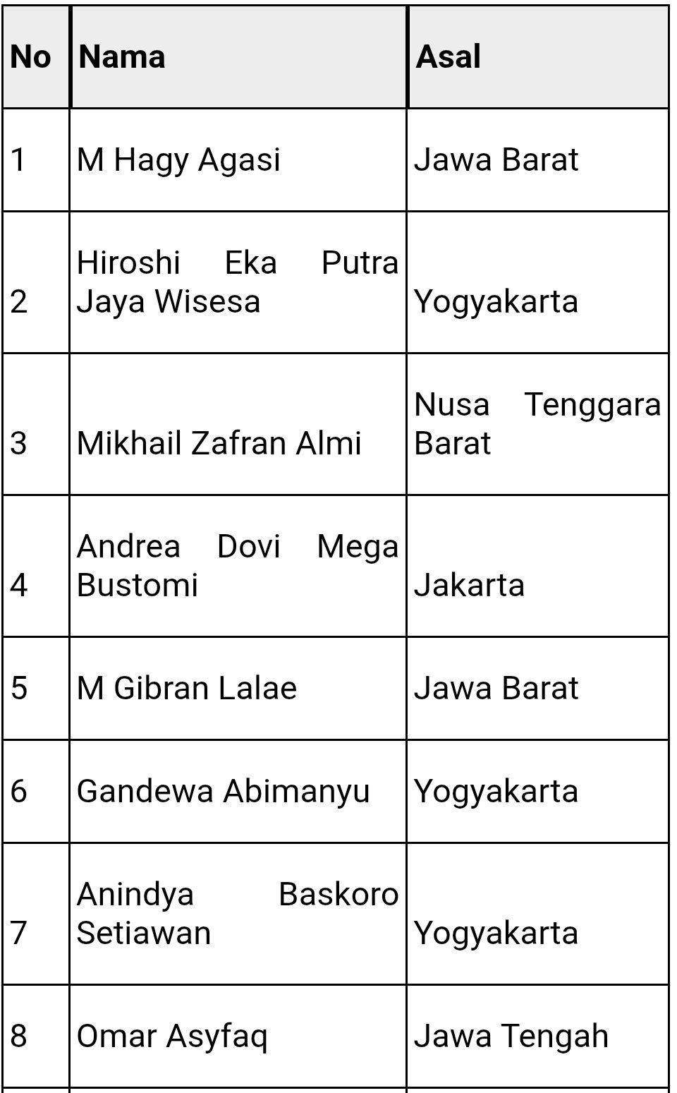 List pebalap yang lolos seleksi Astra Honda Racing School: