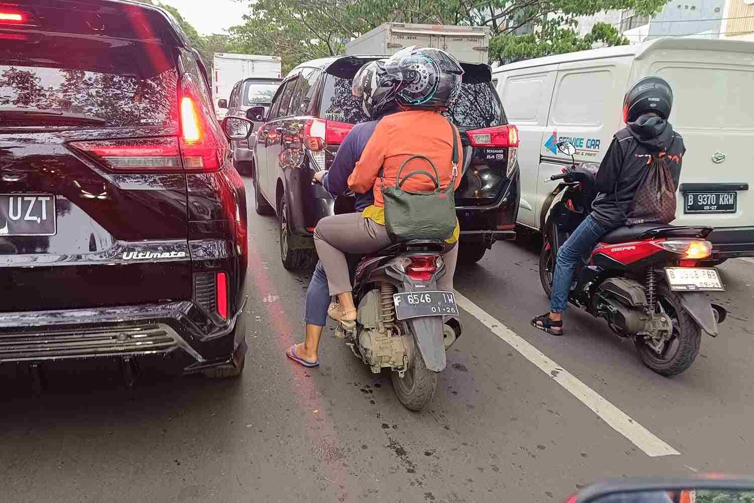 RuangOto.com Mengendarai sepeda motor dengan kondisi lalu lintas macet dan padat jelas sangat menguras energi dan emosi. Namun demikian, dalam kondisi apapun pengendara sepeda motor harus selalu berkepala dingin dan mematuhi aturan lalu lintas yang berlaku dan terutama #Cari_aman di jalan.