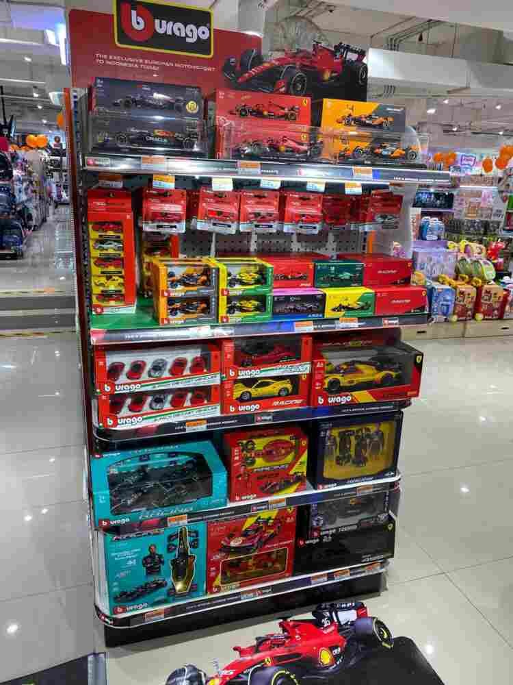 Saat ini, koleksi resmi Bburago Ferrari dan Formula 1 sudah tersedia di beberapa gerai Toys Kingdom, termasuk di Jakarta (Artha Gading, Gandaria City, Lippo Kemang, dan Kota Kasablanka), Depok (Margo City), Surabaya (Pakuwon Mall, Tunjungan Plaza), Cibubur (Living World Cibubur), dan Bali (Living World Denpasar, Mall Bali Galeria), serta dapat ditemukan di toko mainan dan buku seperti Toys City, Multi Toys, Periplus dan Kinokuniya, memberikan kesempatan bagi penggemar untuk melihat langsung kualitas serta detail khas Bburago sebelum peluncuran resminya.